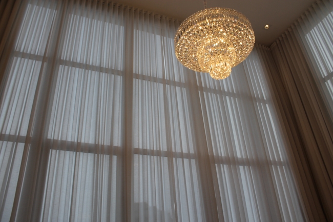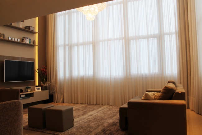 Cortinas de Tecido para esse linving com pé direito duplo. T