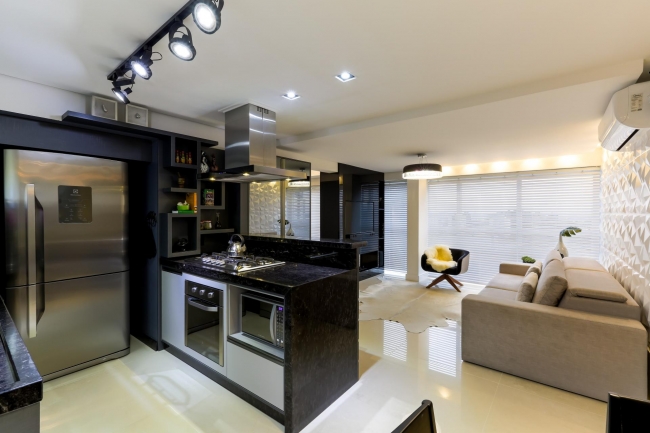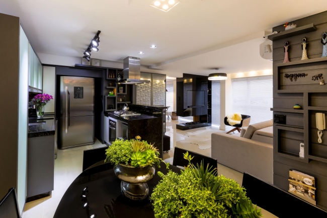 Área social e gourmet com Persiana Horizontal 50mm Bambu motorizadas.